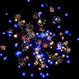 - Множество хризантем с красным мерцанием — Пушистые огненные шары, каждый из которых искрится и переливается алыми вспышками.