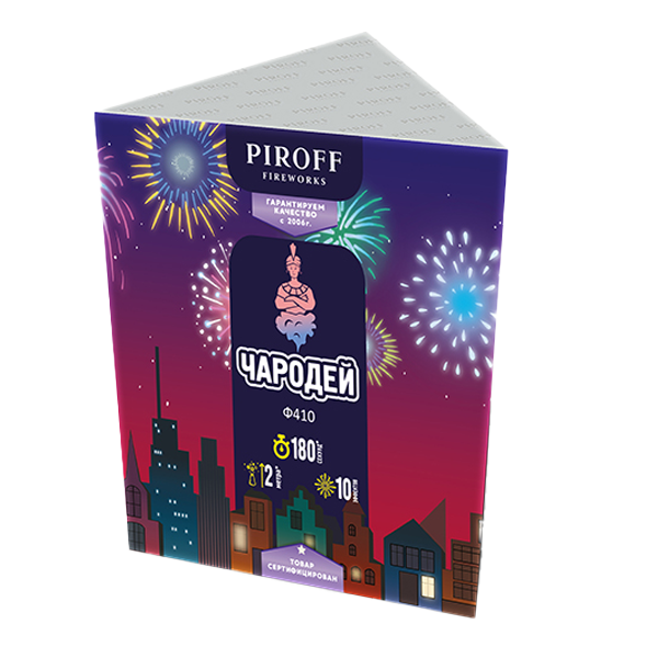 Приготовьтесь к настоящему пиротехническому шоу! Фонтан «Чародей Piroff» – это три минуты непрерывного волшебства, в котором сочетаются ослепительные вспышки, мерцающие искры, разноцветные брызги и завораживающий треск. 10 эффектов, которые превратят ваш праздник в незабываемое зрелище!