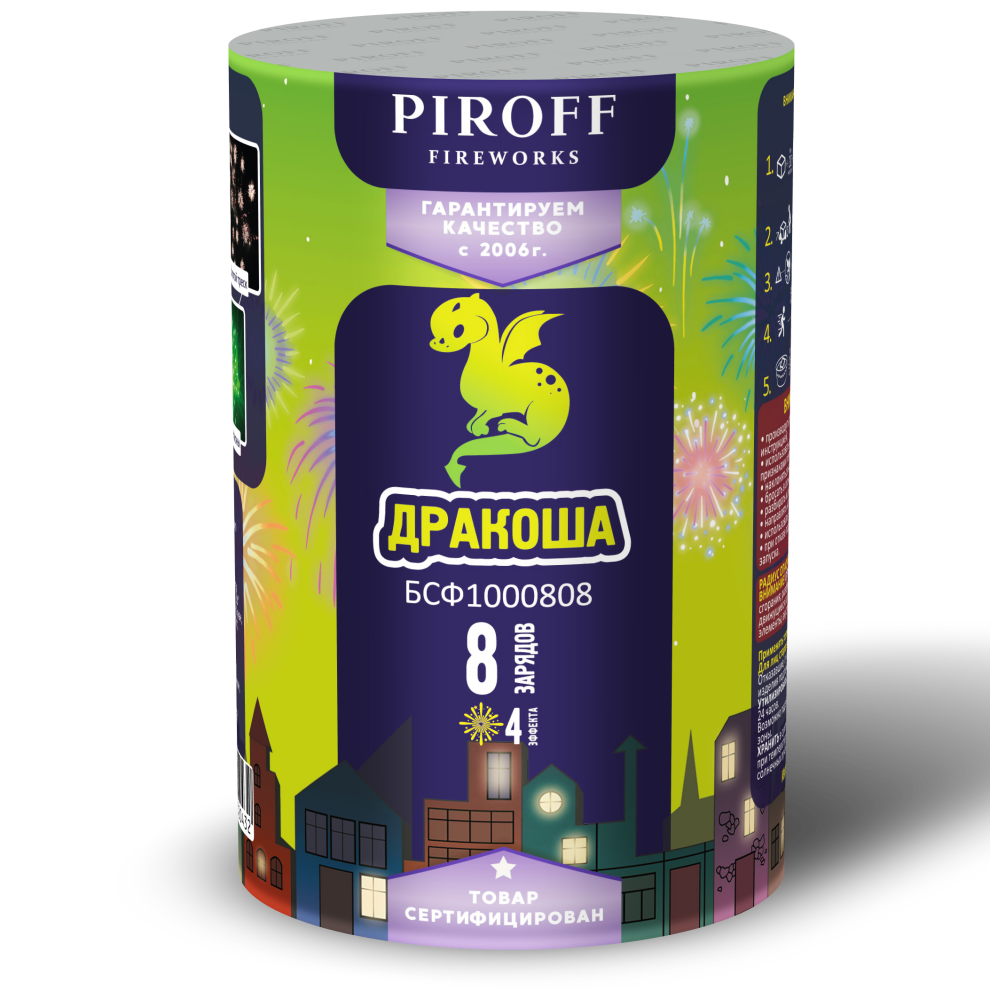 Почувствуйте рождение легенды! «Дракоша» — это не просто комбинация салюта и фонтана, это целое огненное приключение, воплощенное в пиротехнике. От первого клубка пламени у ваших ног до последней искры в небе — вы станете свидетелем рождения, полета и прощального дара мифического существа. Это шоу с характером и сюжетом, которое превратит ваш праздник в эпическую сагу.