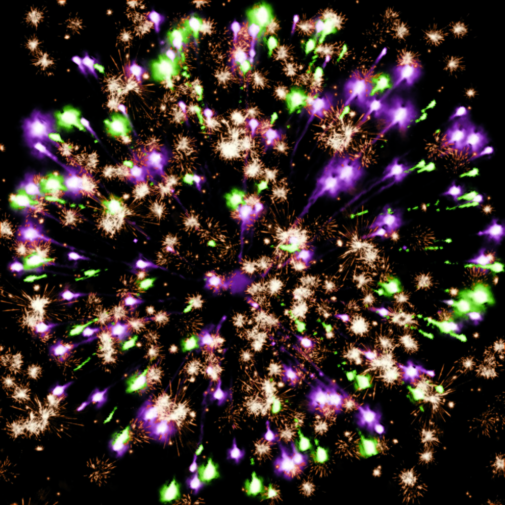 Разноцветные кометы и золотые искристые трассы, как стремительный полёт, разрываются сферами-посланиями: