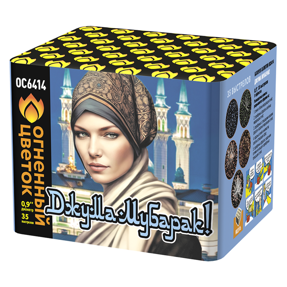 Величественный салют, созданный для особой атмосферы святой пятницы! 35 залпов в течение 60 секунд создадут в небе сияющую симфонию, где переплетаются традиционные цвета исламской культуры — зелёный, белый, синий и серебряный. Каждый взрыв — как молитва, поднимающаяся к небесам.