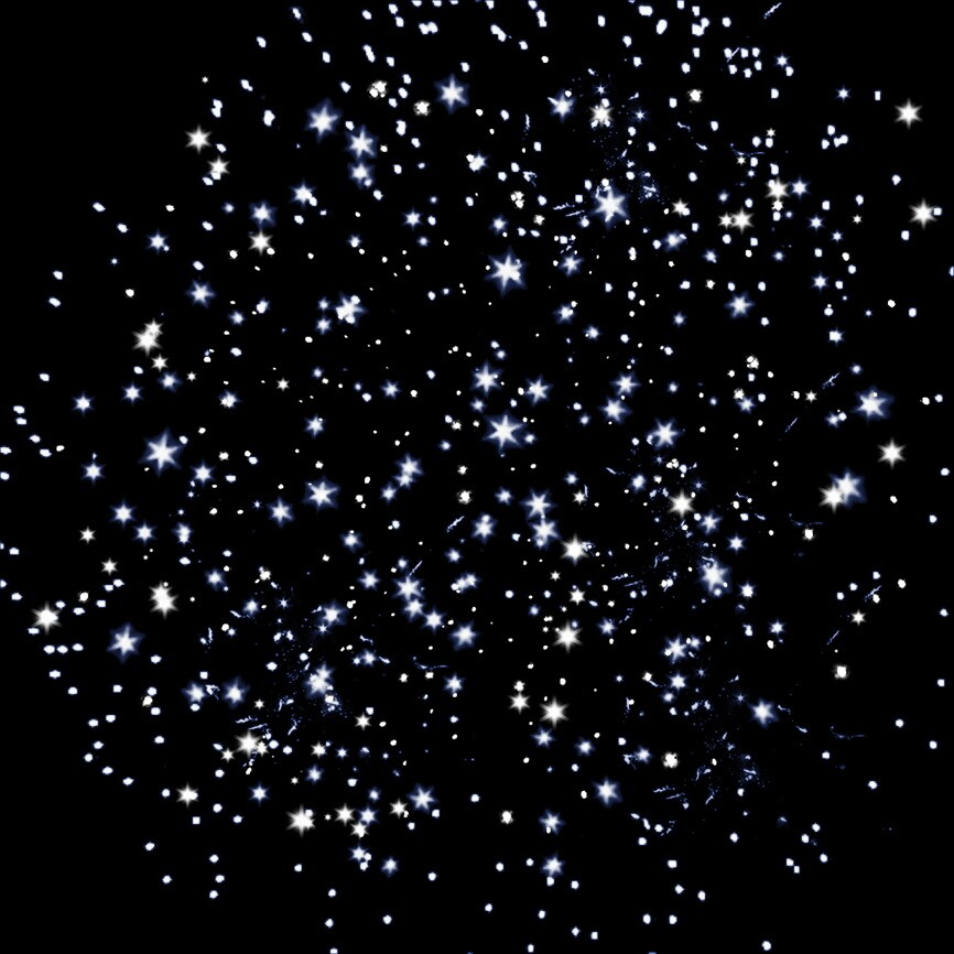 Разноцветные кометы разрываются сферами из синих и белых мерцающих огней