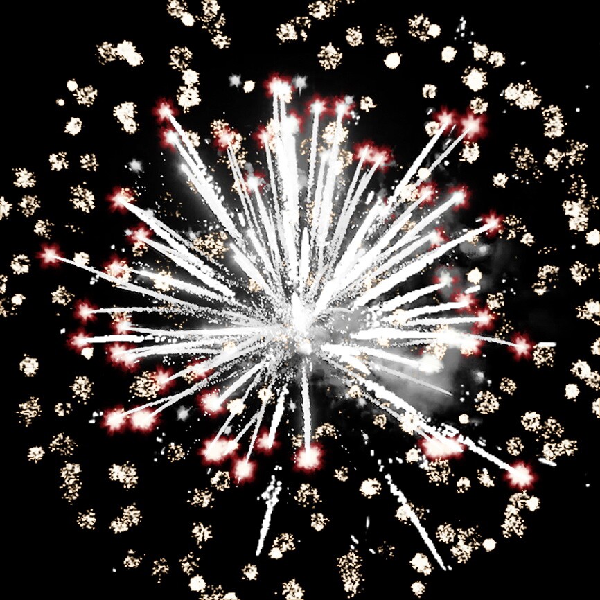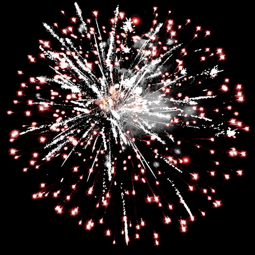 Серебряные форсы с красными огнями на концах и серебряные трещащие огни