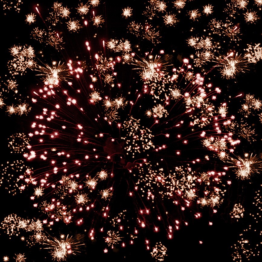 Красные огни и множество золотых трещащих сфер