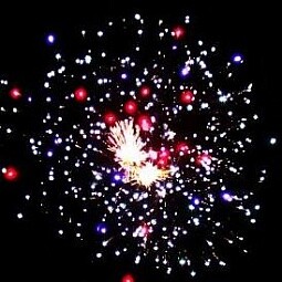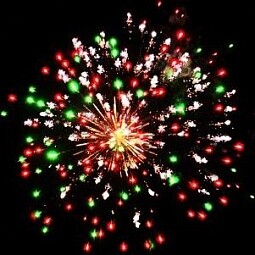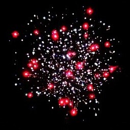 - Красная комета раскрывается красными пальмами с треском и мерцанием — грандиозный финал: багровый штрих на небе взрывается ветвистыми алыми пальмами, окутанными энергичным треском и сиянием.