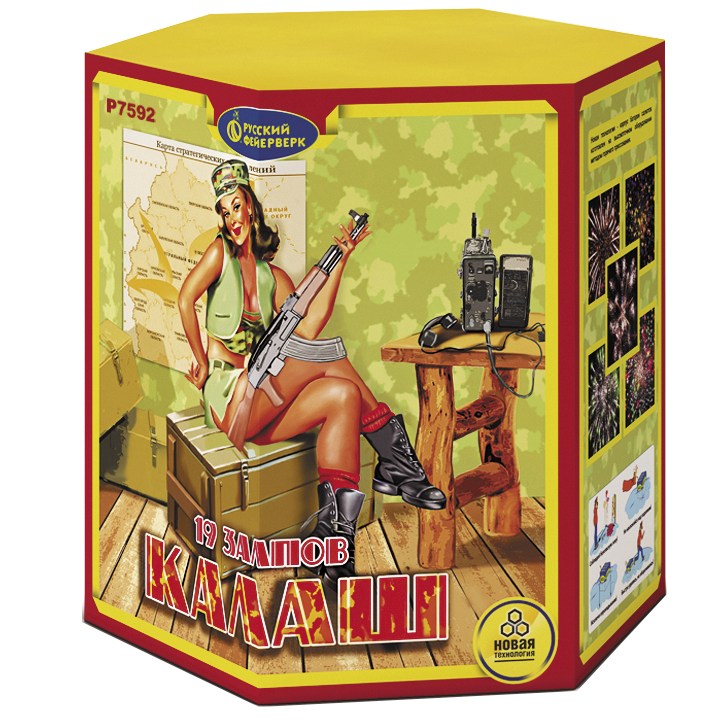 Усиленная версия легендарного салюта «Калаш»! 19 мощных залпов создают непрерывное 35-секундное шоу, где каждый эффект отработан с кинематографической точностью. Увеличенное количество зарядов и калибр делают это шоу настоящим фейерверком-эпопеей.