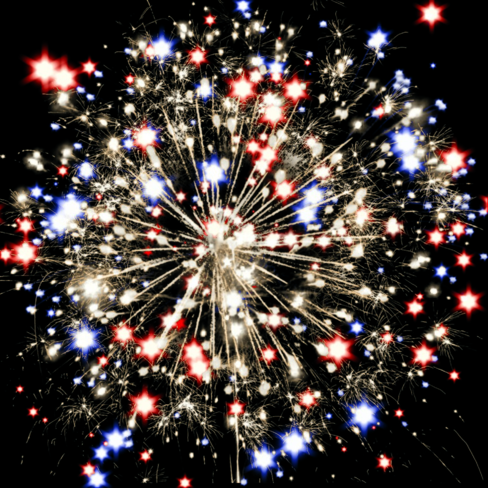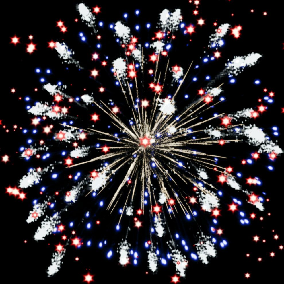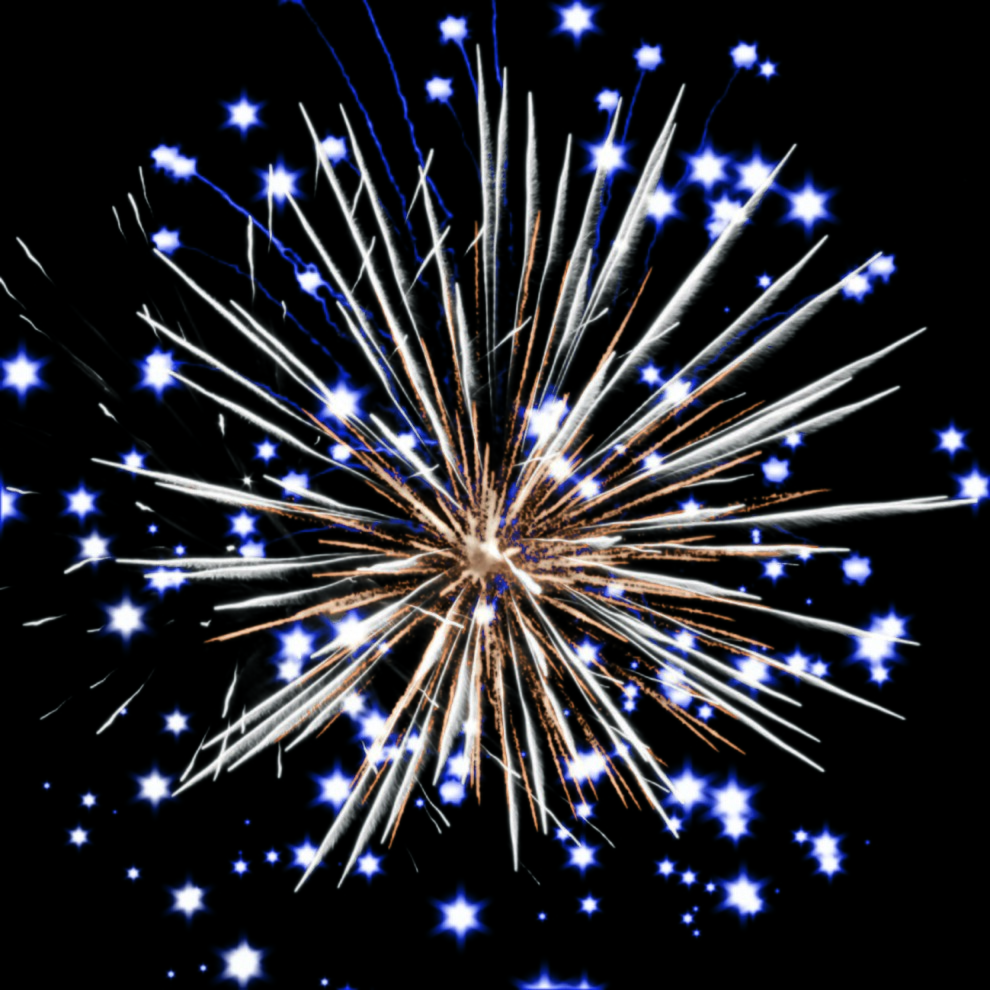 Красные и синие огни в сочетании с множеством серебряных трещащих искр.