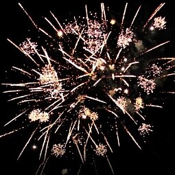 - Золотые кометы раскрываются огромными пионами с треском — Величественные золотые следы растворяются, рождая мощные огненные шары, оглашающие округу громовым, весёлым грохотом.