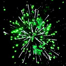 - Россыпь изумрудного жемчуга с мерцанием и треском — Насыщенные зелёные бусины рассыпаются по небу, мерцая и громко трескаясь, словно драгоценные камни, излучающие свет и звук.