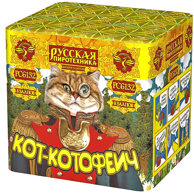 «Кот-Котофеич» — это очаровательный салют, который подарит вашем празднику лёгкость и веселье. Два эффекта, сочетающие яркие цвета и забавный треск, создадут атмосферу радости и уюта. Идеальный выбор для небольших мероприятий, где важны теплота и искренние эмоции.