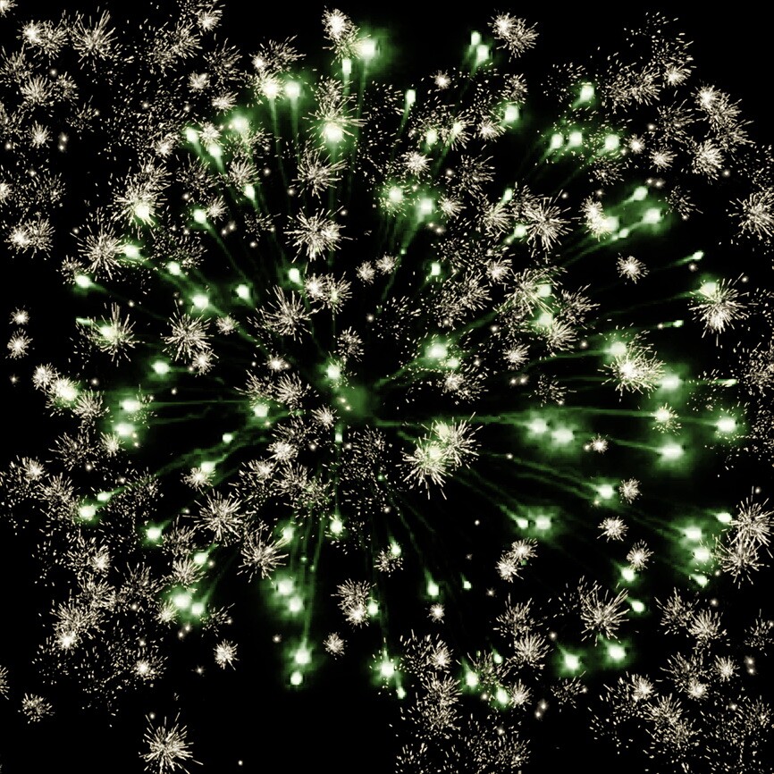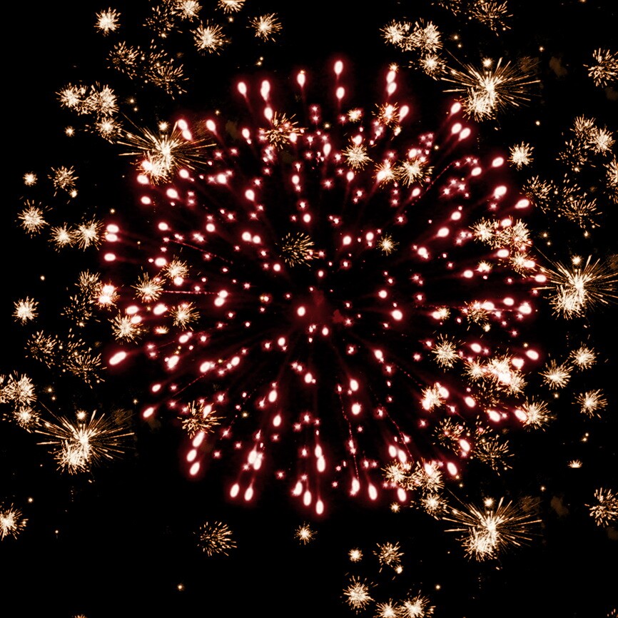 - Алые искры — красные огни, озаряющие небо, в обрамлении множества весело трещащих сфер.