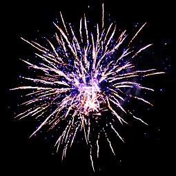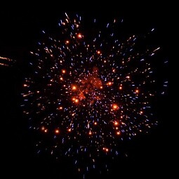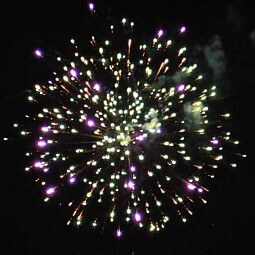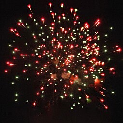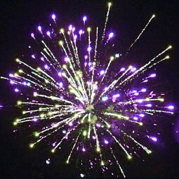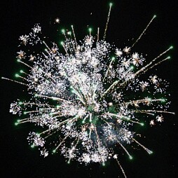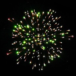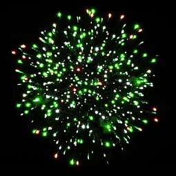 - Пурпурно-зеленые пионы в трещащем облаке — сложные многослойные разрывы, где цвет сочетается со звуком.