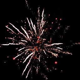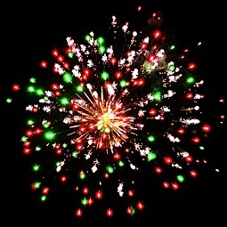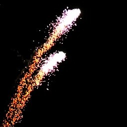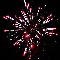 - Красная комета раскрывается белой хризантемой — Красный след устремляется в небо и раскрывается в пушистый, ослепительно-белый шар, похожий на снежный ком.