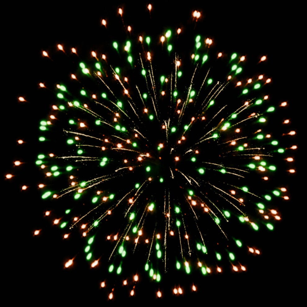 7. Трещащие огни (залп) — Мощный и громкий финал, озаряющий небо ослепительными вспышками, наполненными весёлым, безостановочным треском.