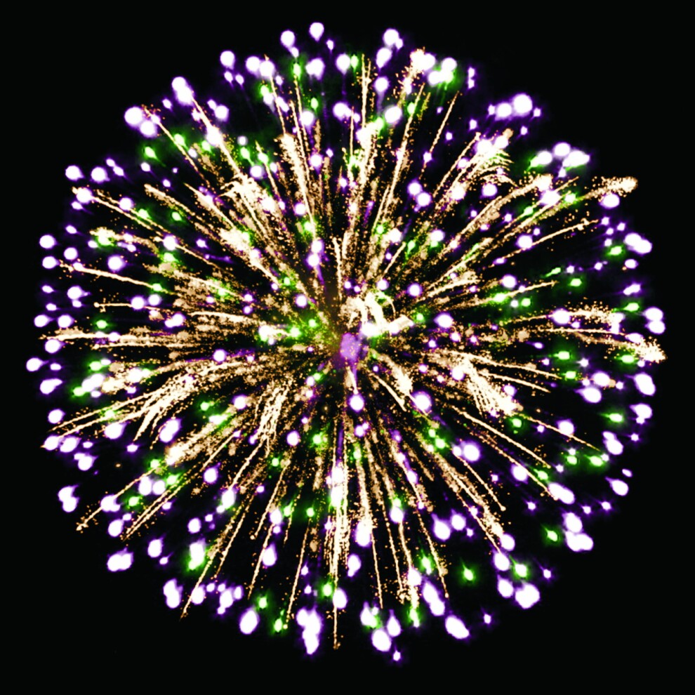 5-6. Золотые с трещащими искрами форсы, красные, фиолетовые и мерцающие белые, зелёные огни — Мощная композиция, где энергичное потрескивание, благородное золото, страсть красного, тайна фиолетового и магия мерцающих оттенков создают невероятный праздничный коктейль.