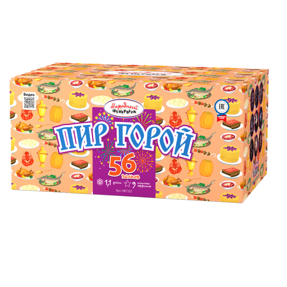 Пир горой — это 80 секунд фейерверк-марафона! 56 зарядов калибра 1,1" создают непрерывное шоу с максимальной плотностью эффектов. Идеальный выбор для тех, кто ценит длительность и насыщенность зрелища без пауз. Это настоящий «пир» для глаз, где небо постоянно заполнено искрами, жемчугом и хризантемами.