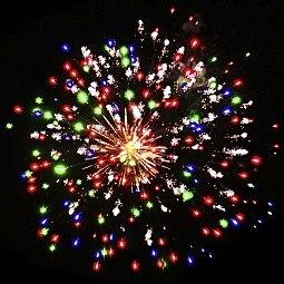 - Огромные мерцающие сферы с красными, зелеными и синими искрами — Грандиозный финал! Огромные переливающиеся шары, вспыхивающие всеми цветами праздника, как фейерверк эмоций!