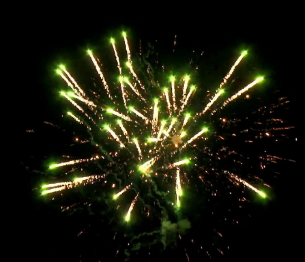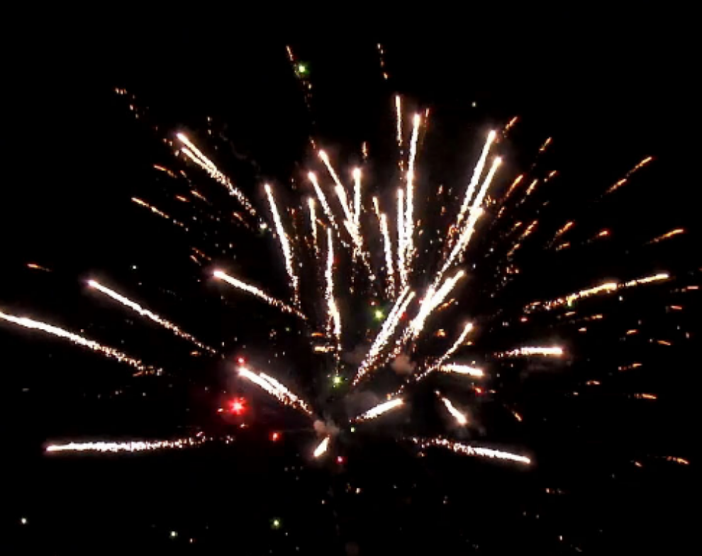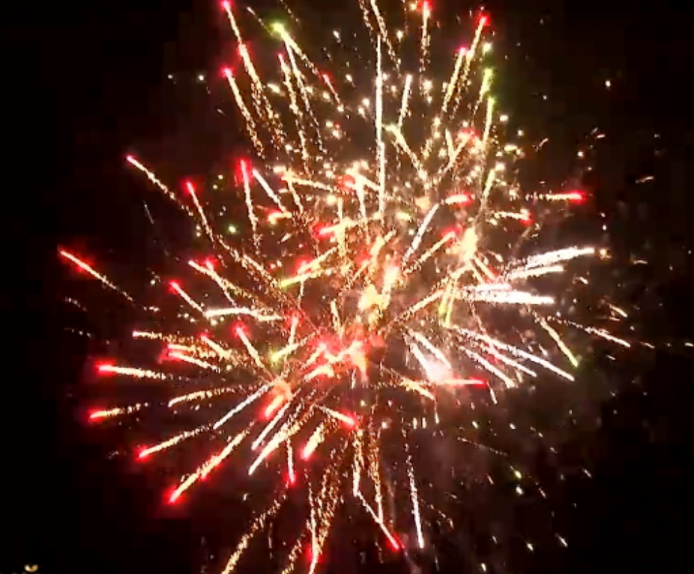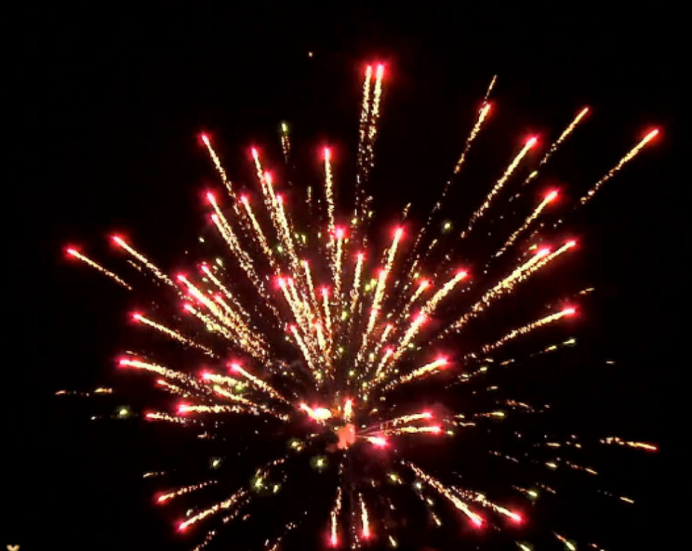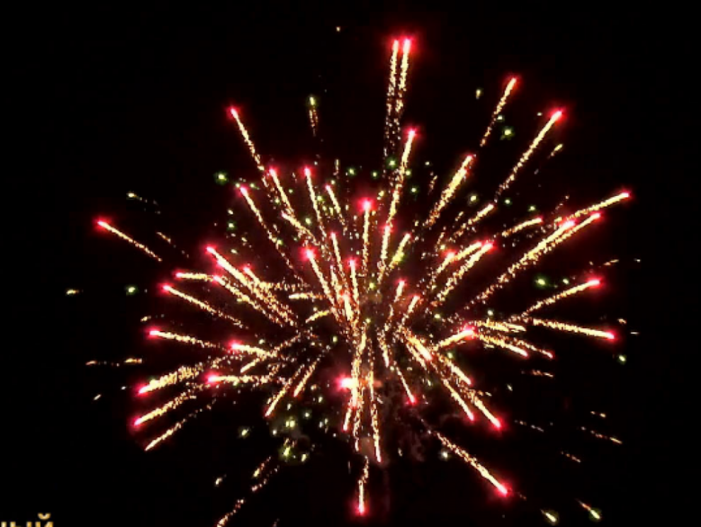 - Золотые форсы с красными огнями на концах и множество трещащих огней — Энергичный финал, где яркие вспышки и трещащие искры символизируют безудержное веселье праздника.