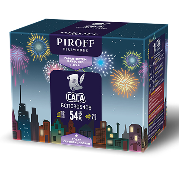 Мощная и насыщенная батарея, которая разворачивает в небе настоящую сагу из семи эффектов. Идеальный выбор для тех, кто ценит продолжительность, интенсивность и разнообразие зрелища. Золотые и серебряные оттенки создают атмосферу роскоши и величия.