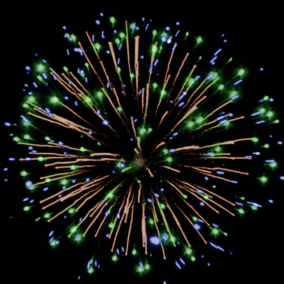4. Золотые форсы, красные, зелёные и трещащие огни — Веселый хоровод: традиционные цвета с искрящимся треском радости.