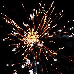 - В финале парчовые короны, разноцветный жемчуг, мерцание и оглушительный треск! — Апофеоз праздника! Десятки корон, тысячи разноцветных искр, всепоглощающий блеск и ликующий грохот!