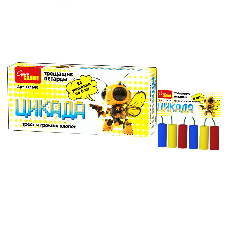 Петарда "Цикада" — это уникальное сочетание двух эффектов: сначала веселый треск, а затем громкий хлопок. В упаковке 6 штук, что делает её отличным выбором для тех, кто хочет разнообразить классические хлопки чем-то необычным. Идеально подходит для создания интриги и дополнительного веселья.