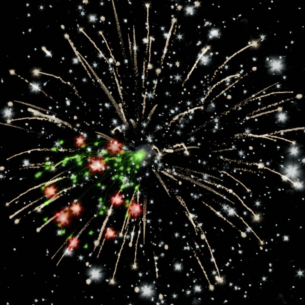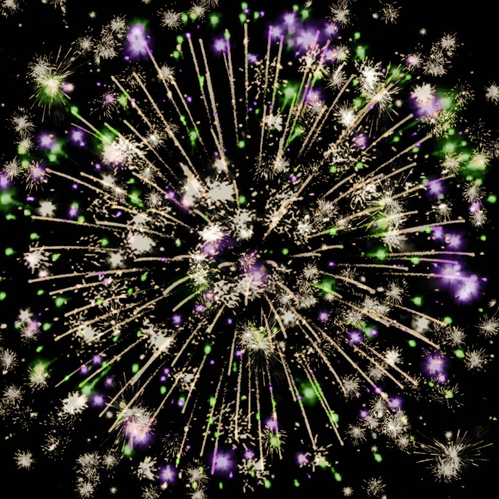 2-3. Золотые форсы, фиолетовые, зелёные, красные, жёлтые огни и трещащие сферы — Многоцветная феерия, где каждый цвет несёт пожелание: страсть, рост, богатство, радость, а треск отгоняет всё плохое.