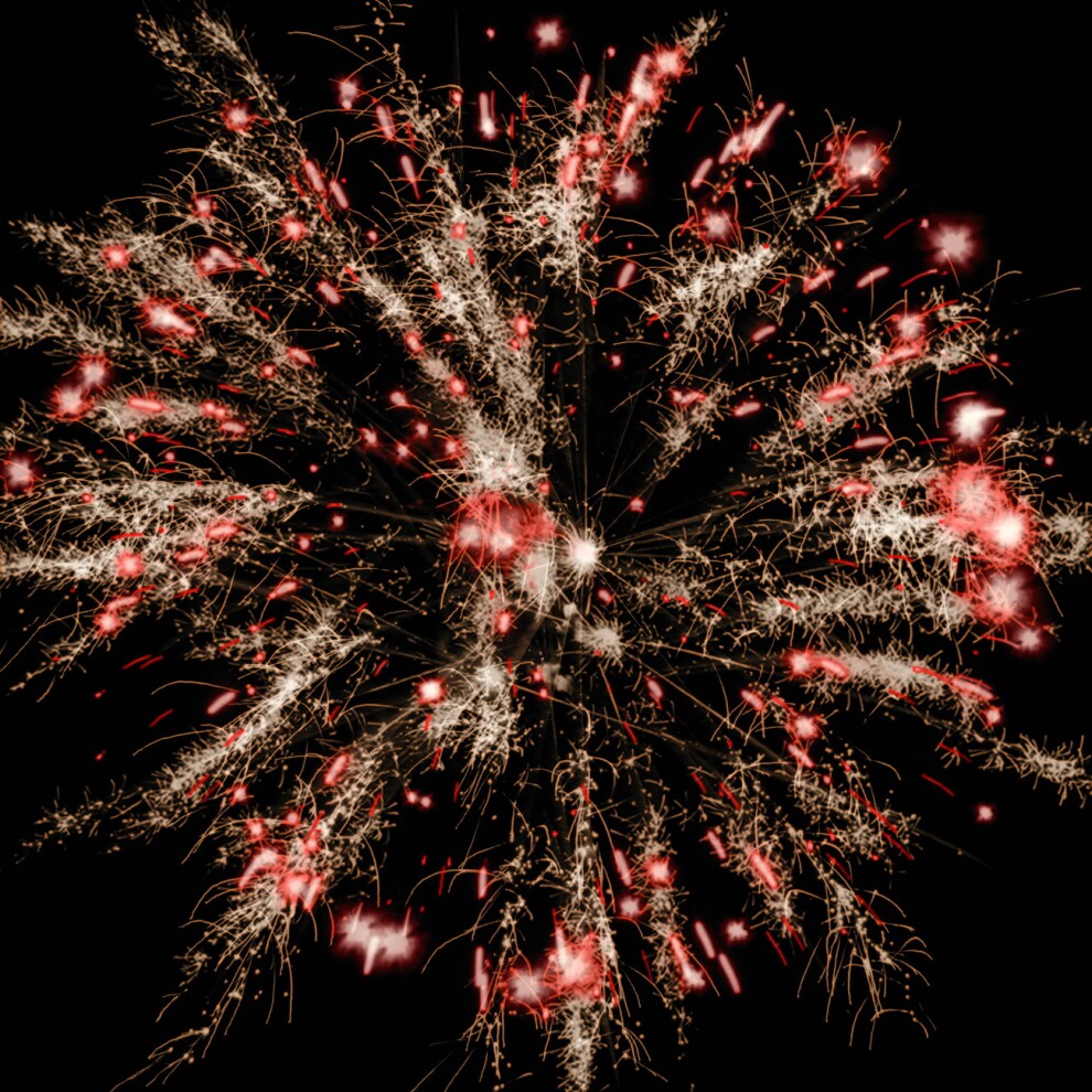 5. Золотые трещащие искристые форсы и красные мерцающие огни — Мощный финал: энергичный треск привлекает удачу, а золото и красный сулят процветание и счастье.
