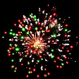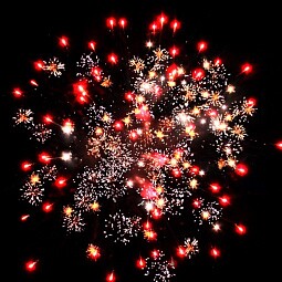 - Красные пионы с треском — пламенные вспышки, оканчивающиеся энергичным треском.