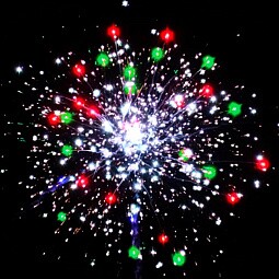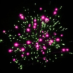- Разноцветные пионы с серебряными хризантемами — грандиозная финальная канонада из разноцветных шаров, каждый из которых раскрывается в сияющий серебряный цветок!