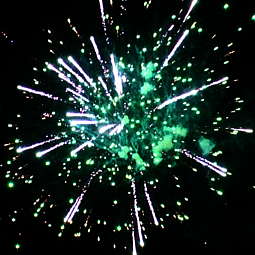 - Зелёная комета, раскрывающаяся разноцветным пионом.