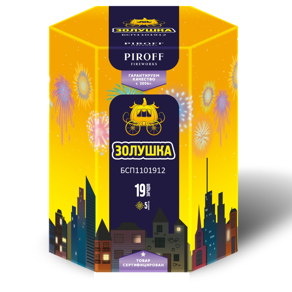 «Золушка» — это салют, который рассказывает самую известную историю преображения на языке пиротехники. От скромного, но эффектного начала до блистательного, волшебного финала — каждым залпом он повторяет путь героини, даря зрителям ощущение настоящего чуда.